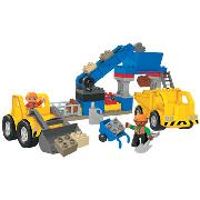 Your child will have lots of educational fun on the Construction Site with this Digger with working treads, rotating cabin, moving arm and tilting shovel. ...